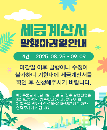 [공지] 8월 세금계산서 발행마감일 안내 페이스북 트위터 구글+