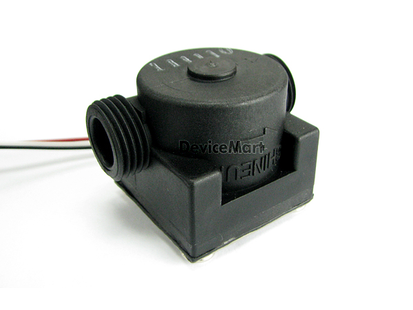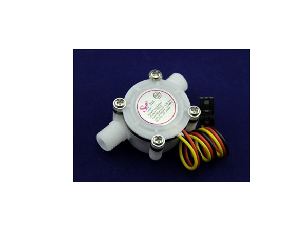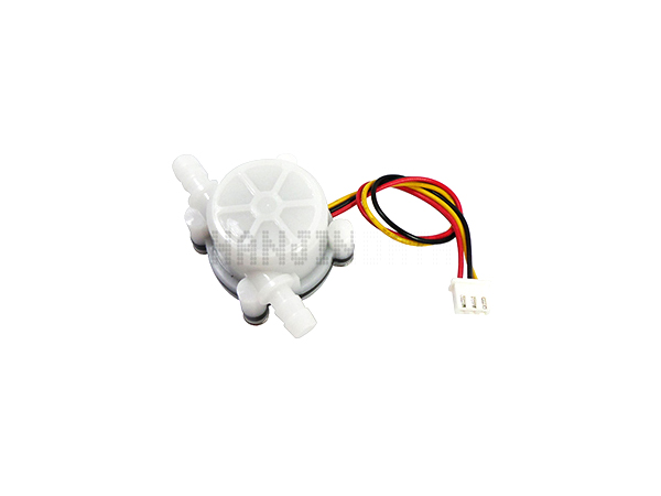 유량센서는 플라스틱 재질 이며, 유량감지센서는 자석과 홀센서로 구성되어 있습니다.. 내부 구조는 유량을 감지하는 로터(ROTOR)와 자석, 홀센서로 이루어져 있으며, 유량 변화에 따라 홀센서의 출력이 펄스로 나옵니다.
