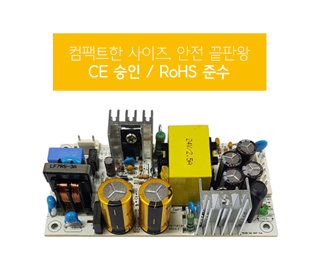 On board 타입 1채널 5W SMPS / 출력전압 : 24V / 출력전류 : 230mA / 입력전압 : AC 85~264V / 변환효율 : 81% / MPD