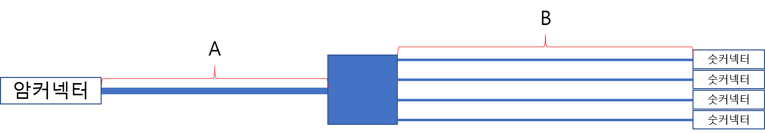 모델명 : [Coms] DC 전원 분배기 / 4분배 / 1DC(F) to 4DC(M) / 40cm [NA808] A부분 길이와 B부분 길이를 알고 싶습니다.