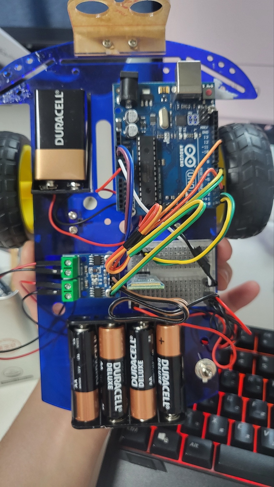 전원을 켜면 한쪽모터가 계속 돌아갑니다 모터에 문제가 있는것같아요 정상적으로 아두이노 업로드를 하고 휴대폰 연동도 되는데..