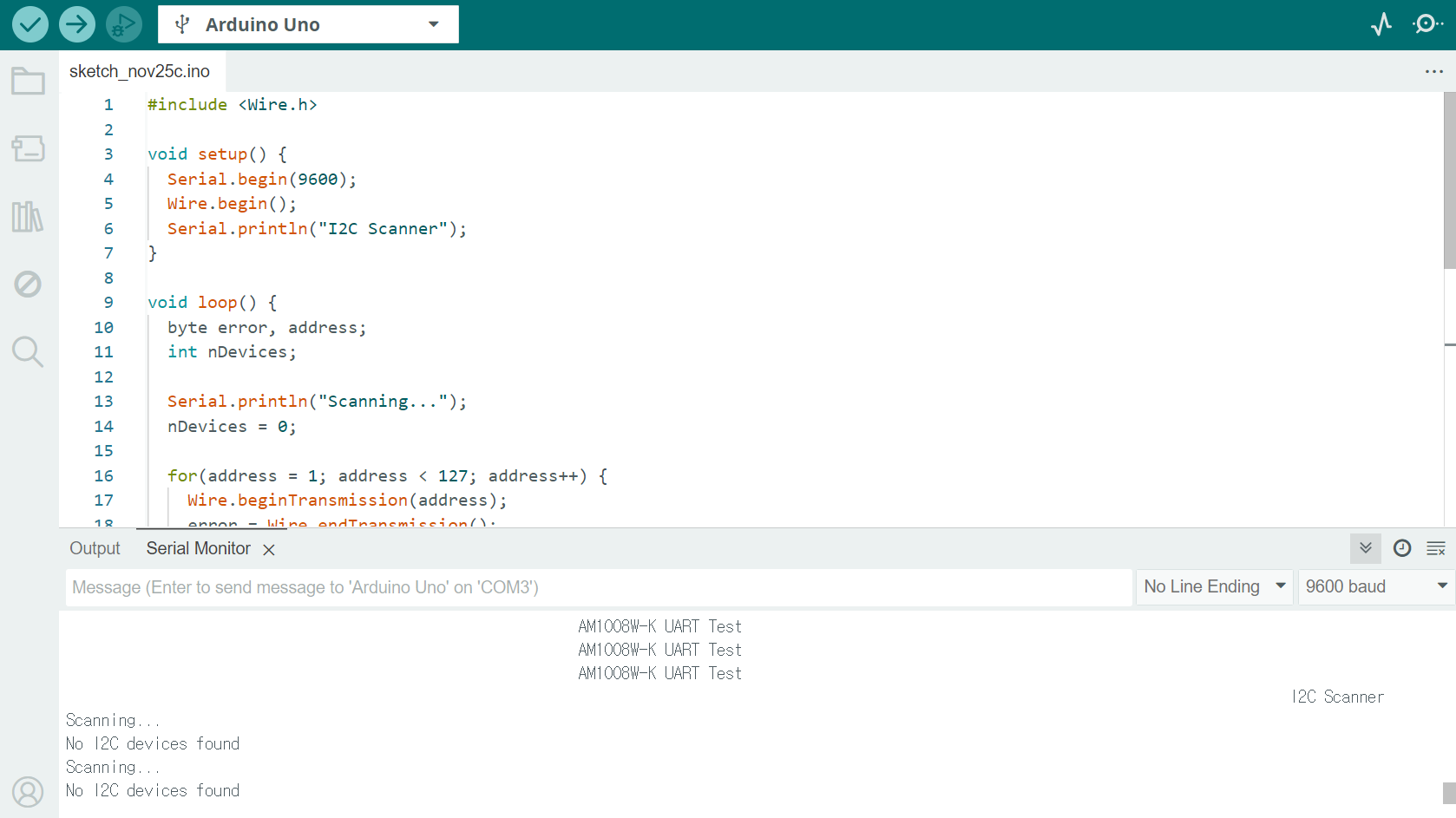 am1008w-k 사용 중인데 지금 아두이노로 i2c연결을 확인해보면 i2c 연결이 확인이 되지 않습니다 혹시 배선 연결이 문제가 있는지 확인 한번 부탁드립니다 그래서 예제 코드로 돌려봐도 값이 안뜨네요 감사합니다