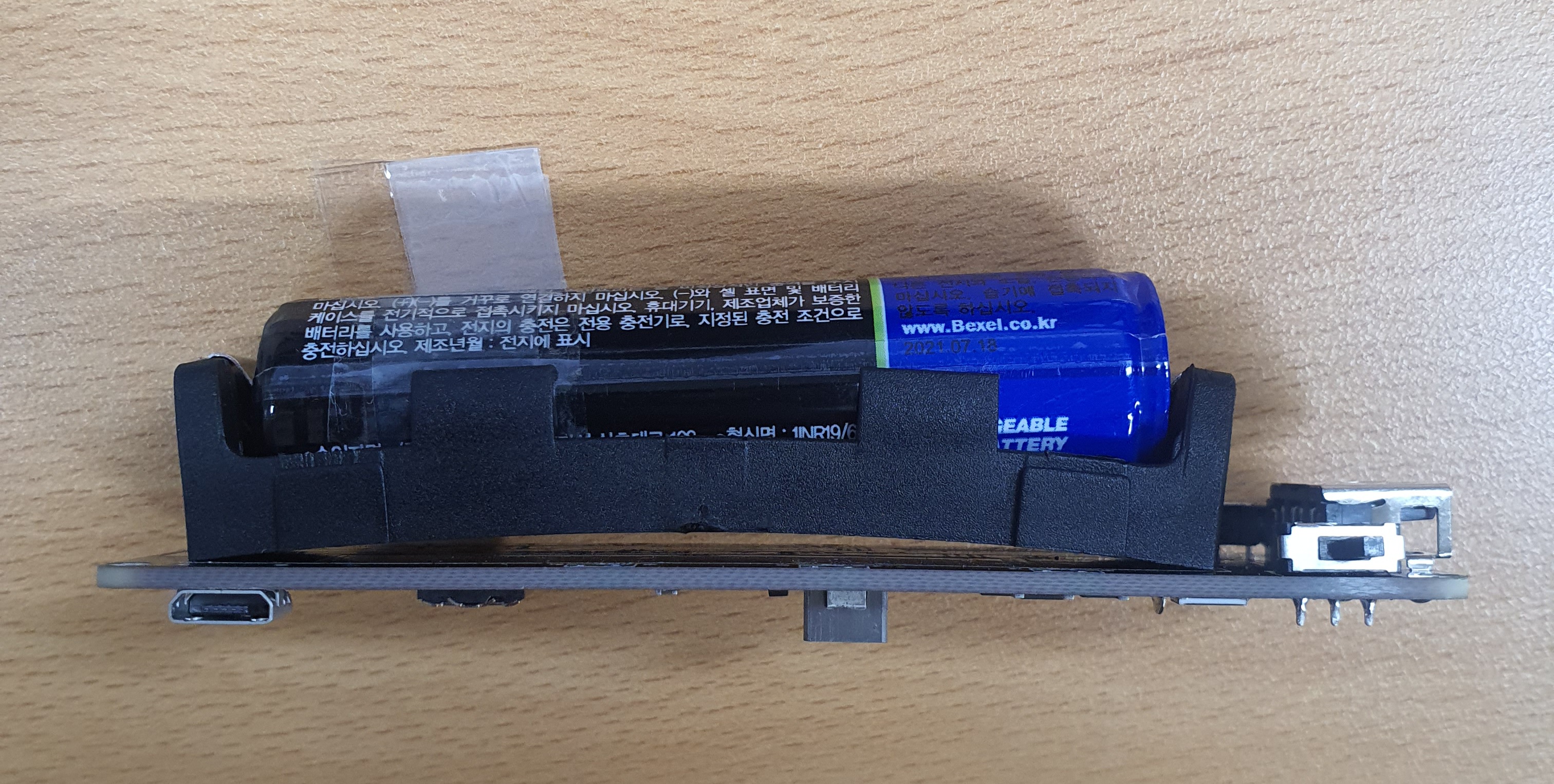 69.5mm의 18650 배터리를 끼우면 아래 사진과 같이 휘어집니다 해당 배터리의 길이를 버니어 킬리퍼스로 정확히 재봤을 때, 69.3mm가 나옵니다. 테스트용 제품은 정확한 길이가 어떻게 되는지 궁금합니다. 테스트용으로 가지고 계신 배터리가 함께 주문한 상품에 뜨는 [Coms] 18650 리튬이온 배터리 3.7V 2600mAh / 보호회로 내장형 / 1...