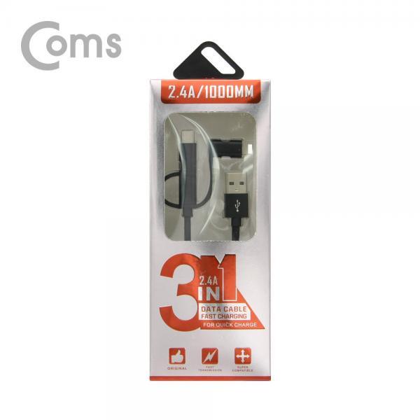 • [Coms] 스마트폰 3 in 1 멀티 케이블 1M / Black / 꼬리물기(Type C/8핀/5핀)/충전[ID124]