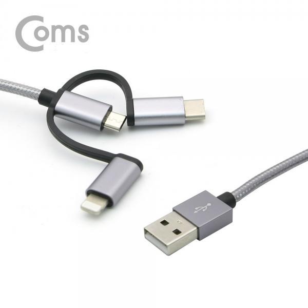 • [Coms] 스마트폰 3 in 1 멀티 케이블 1M/Dark Gray/꼬리물기(USB 3.1 Type C/8핀/Micro 5핀)/충전[ID125]