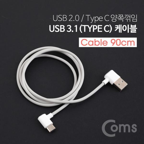 • [Coms] USB 3.1(Type C) 케이블 90cm / 양쪽 꺾임(꺽임), Gray[ID516]