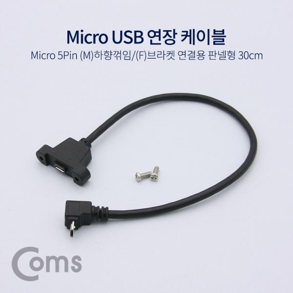 • [Coms] USB 연장 케이블 - Micro 5Pin (M)하향꺾임(꺽임)/(F)브라켓연결용 판넬형, 30cm, Black[NA748]