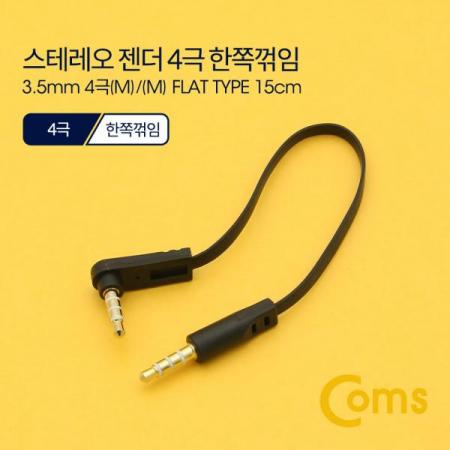 • [Coms] 스테레오 젠더 3.5 4극 M/M 한쪽 꺾임(꺽임), 15cm, FLAT 타입/Stereo[ND543]