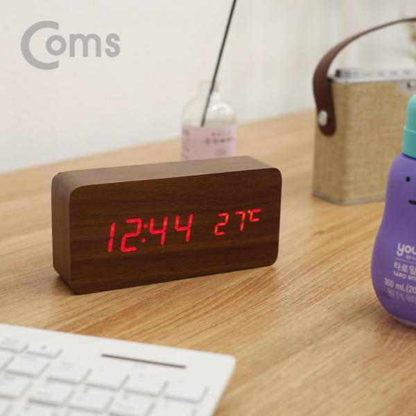 • [Coms] 디지털 LED 나무시계 (소형 / Brown) [BB349]