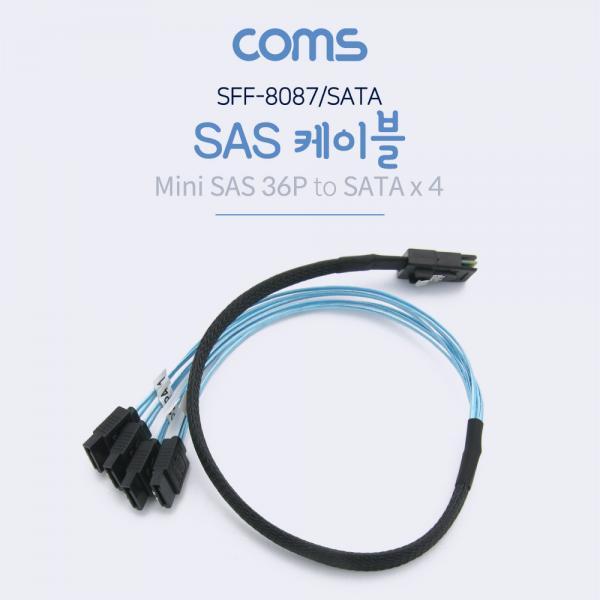 • [Coms] SAS(SFF-8087/SATA) 케이블 50cm, 내장형 Mini SAS 36P to SATA x 4 [BT288]