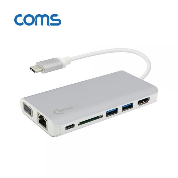 • [Coms] USB 3.1 TYPE C 7 in 1 멀티 컨버터 (HDMI/VGA/RJ45/HUB(USB 3.0*2)/SD/AUX/TYPE C) [CT198]