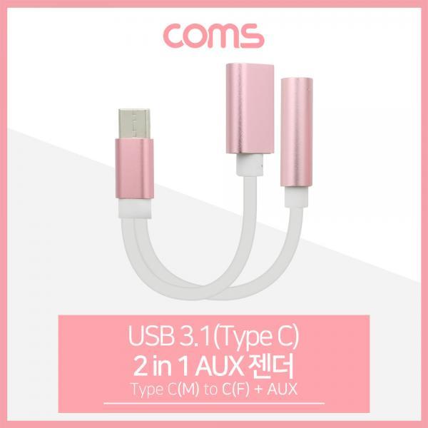• [Coms] USB 3.1(Type C) AUX 젠더(Y형) 약 13cm, Pink/ Type C M/F + Aux [ID562]