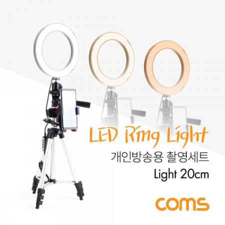 • [Coms] 개인방송용 촬영세트, LED 원형 램프, 링 라이트, USB 전원, Ring Light, 20cm, 삼각대 [BT629]