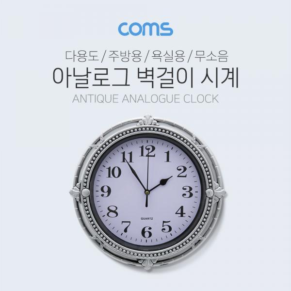 • [Coms] 시계 (아날로그) / 벽걸이원형 / Silver / 주방용 / 욕실용 / 무소음 [ID921]
