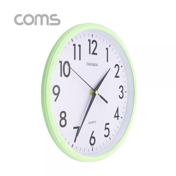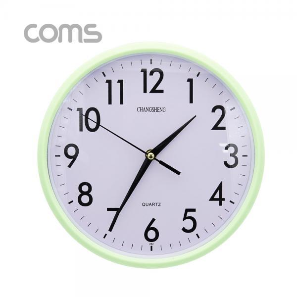 • [Coms] 시계 (아날로그) / 벽걸이원형 / 무소음 / Green / 26cm [ID912]