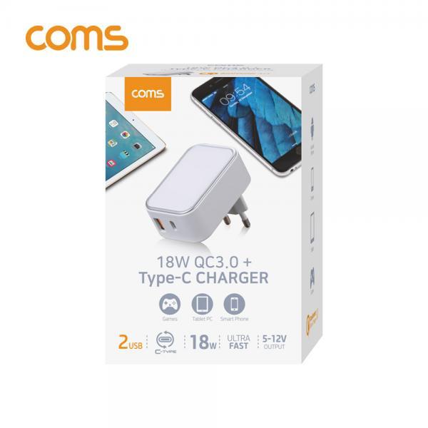 • [Coms] 퀵차지 듀얼포트 멀티 고속충전기 2Port (18W / QC 3.0 / USB PD / USB 3.1 Type C) [KT300]
