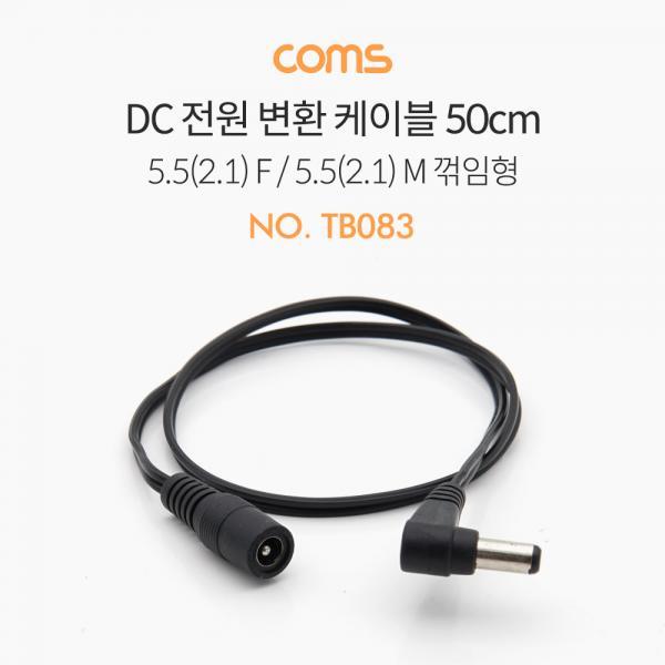 • [Coms] DC 전원 변환 케이블, 5.5(2.1) F / 5.5(2.1) M, 꺾임형(꺽임) 50CM [TB083]