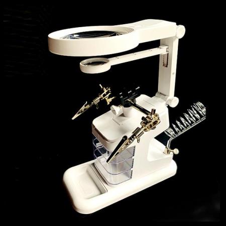 • TH-7026 / 다기능 수리 스테이션 (흰색) / 인두기 고정 홀더 / 확대경 2개 3x, 4.5x, 25x / LED 링조명 지원 / 고정용 악어클립 2개 / 3개의 소형 부품 선반 탑재