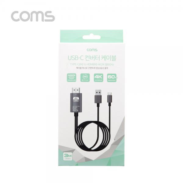 • [Coms] USB 3.1 컨버터 케이블 / Type C to HDMI 2.0 / 4K@60Hz / USB 전원 / 3M [LN532]