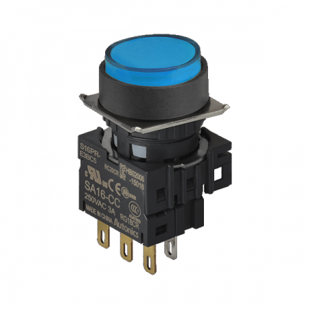 16파이 누름버튼 스위치 S16PR-E3BC12 / 스위치/부저/전기부품 > 산업용 스위치/제어 기기 > 제어/안전 스위치 > 누름버튼 스위치(22파이 이하) / 디바이스마트