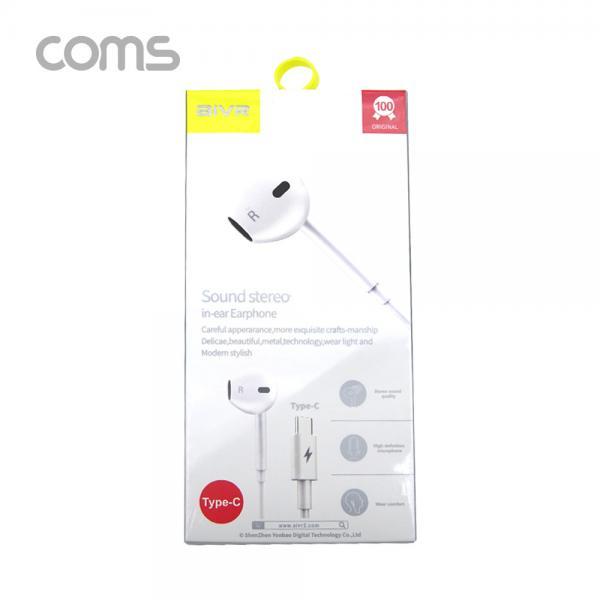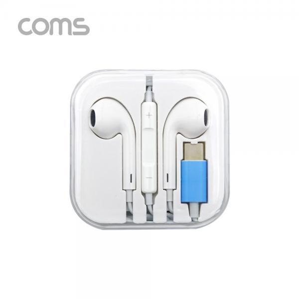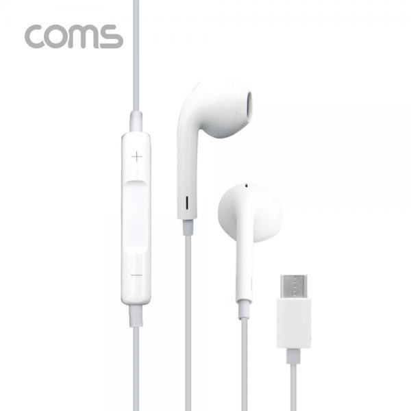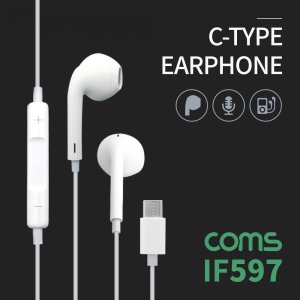 • [Coms] 스테레오 이어폰 1.2m / C-Type 이어폰 / 컨트롤 리모콘 / 마이크 / Stereo / White [IF597]