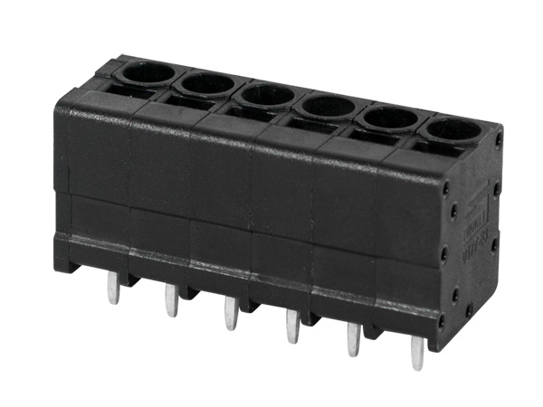 • 3.5mm간격의 소형타입 단자대. 스프링 버튼사용 없이 와이어를 바로 삽입하는 푸시인 모델로써, 작업생산성을 향상할 수 있음, 블랙컬러 앵글타입
