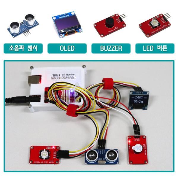 • 초음파 거리측정 센서, 부저, LED 버튼, OLED 디스플레이와 센서, 모듈을 연결하여 사물인터넷 기능을 학습하는 코딩용 키트