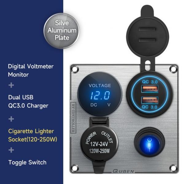 • [QUBEN] 12V USB 듀얼 시가잭 충전기 5V 어댑터 전압계 패널 (실버) [TYE-SP032]