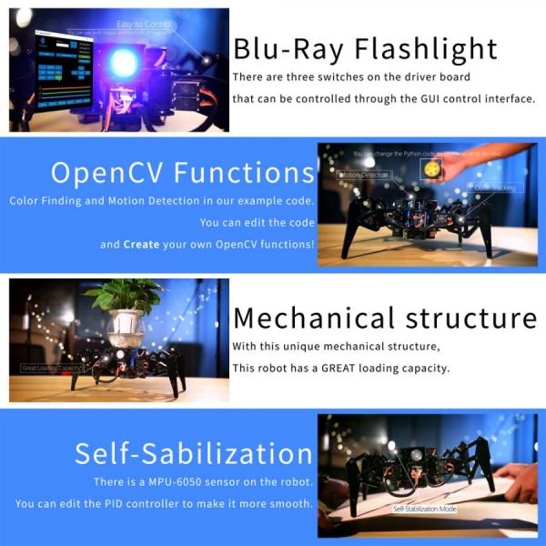 • Raspberry Pi 4/3 모델 B+/B/2B, STEM 크롤링 로봇, OpenCV 추적, 자체 안정화용 Adeept DarkPaw Bionic Quadruped 거미 로봇 키트