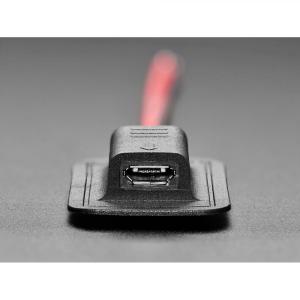 • 베이스에 수평으로 배치된 Micro-B 커넥터 / 빨간색과 검은색 전선이 바닥을 통과합니다