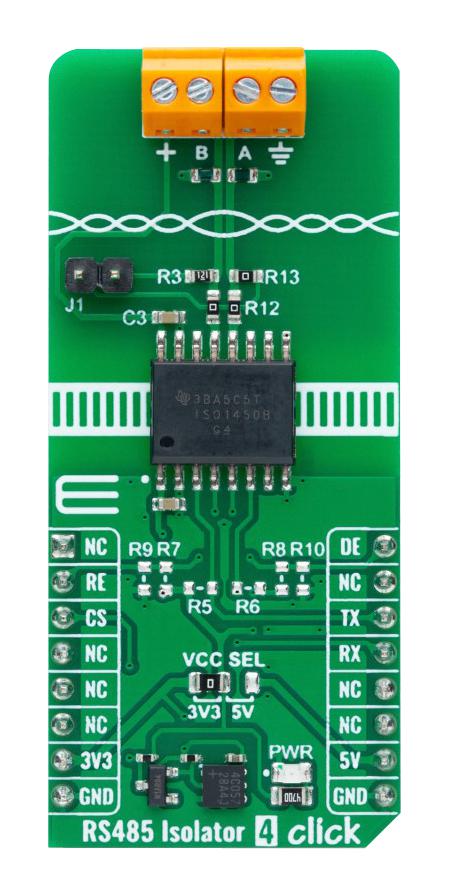 • MIKROELEKTRONIKA - MIKROE-6316 - Add-On Board, RS485 Isolator 4 Click, ISO1450, RS-485 Transceiver, UART, 3.3V/5V in / Element14 Part Number : 4576358