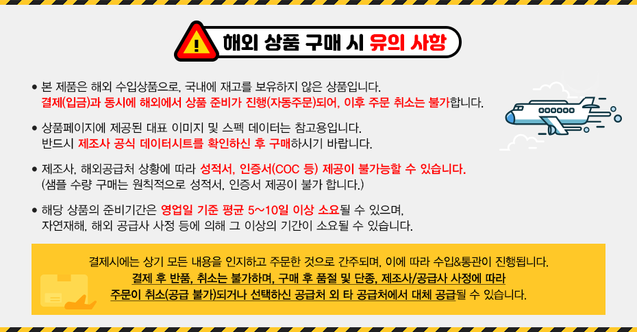 • 모든 제품은 제조사, 공급 업체 사정 및 천재지변 등에 따라 품절/단종/대체 등 재고 소진 또는 단가 변동이 발생될 수 있으며,